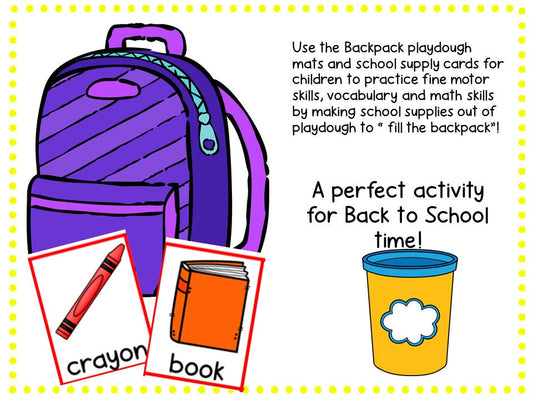 Back to School Playdough Mats, School Supply Theme activity for Preschool, PreK and Kindergarten