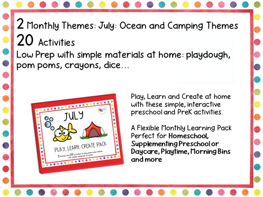 July Play Learn Create Pack, Homeschool Preschool Binder