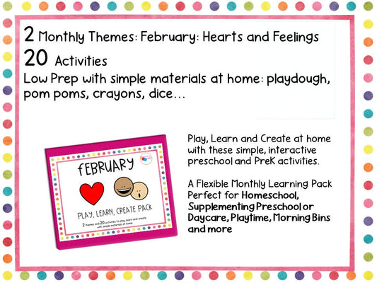 February Play Learn Create Pack for Preschool Homeschool