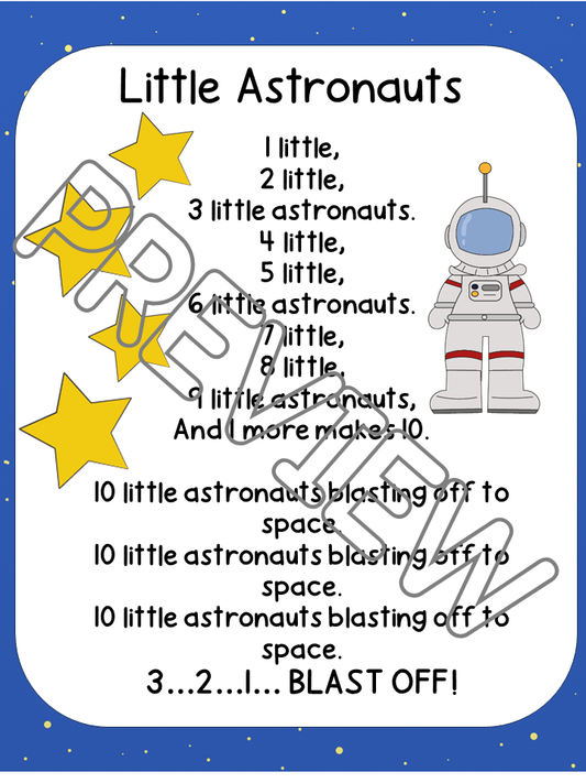10 Little Astronauts Space Theme Song for Preschool PreK and Kindergarten