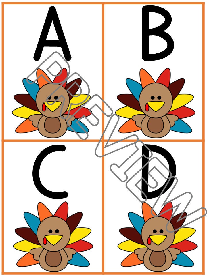 This fun printable turkey resource is great for Fall or Thanksgiving time. These Letter and Number cards can be used for literacy and math games for preschool, PreK and Kindergarten students as well as classroom or home learning area decorations.