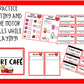 These pages can be used in a classroom or at home and added to familiar toys or objects to go with playing coffee shop or Heart café. These pages are meant to add to the play happening by adding words, reading and pre reading opportunities, writing and prewriting opportunities, numbers and counting opportunities and ideas for creative pretend play. Add these pages to a stand or large box, a play cash register or calculator, some play money or green paper and some play food, cups, plates, napkins and more. Laminating most of these pages will make these pages more durable and be able to be used many times! Page Protectors would also work well. Dry erase markers or crayons can be used with both.