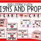 -Heart café Signs: Open, Closed Drive Through, Order Here and Pick Up,